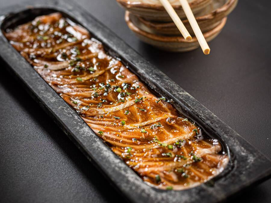 ENTRADA: 2. Kushiyaki de Salmão: Espetinho artesanal de kafta de salmão grelhado . Feito com 100% proteína de salmão e especiarias PRATO PRINCIPAL: Risoto com Camarões GG à Provençal Camarões GG grelhados à provençal com risoto de pomodoro com alho poró, finalizado com fonduta de queijo SOBREMESA: Chocolate, Doce de Leite e Café (Camadas cremosas de doce de leite, café e chocolate)